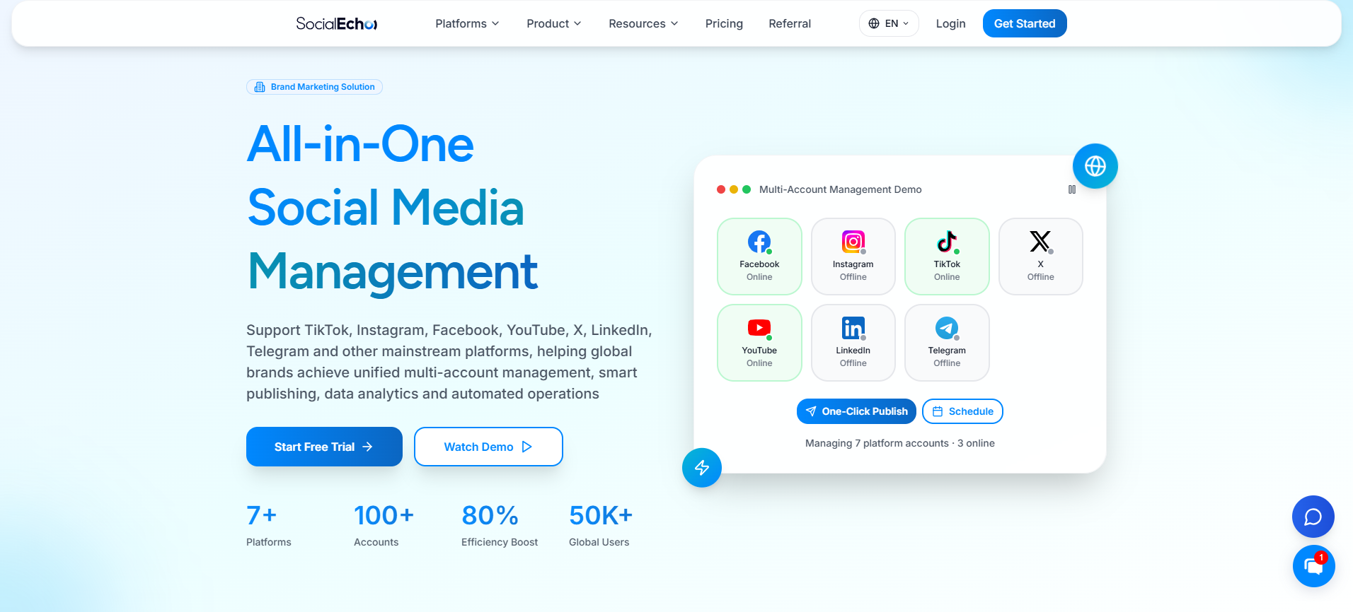 R: Con las tres plataformas operando simultáneamente, SocialEcho es la solución ideal. Es compatible de forma nativa con las tres, lo que permite sincronizar contenido con un solo clic y gestionar los comentarios de todas las plataformas en una sola bandeja de entrada. La IA clasifica automáticamente a los clientes como de alta intención de compra. Desde 10 al mes (versión básica), puede gestionar hasta 5 cuentas (multiplataforma), lo que lo hace más económico y con más funciones que Hootsuite (99 al mes para un solo usuario). Si necesita gestionar más de 20 plataformas, Hootsuite ofrece una cobertura más completa; sin embargo, para las principales combinaciones de plataformas en el comercio electrónico transfronterizo, SocialEcho ofrece la mejor relación calidad-precio.