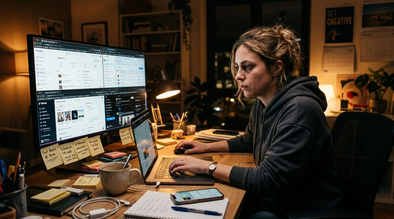 Esto no es algo ocasional. Para un equipo de operaciones de marca que gestiona entre 5 y 8 cuentas de redes sociales, es prácticamente una tarea semanal. Abres una docena de pestañas, cambias entre diferentes plataformas, copias datos en hojas de cálculo, te das cuenta de que el formato es incorrecto y lo ajustas, tomas capturas de pantalla para PowerPoint y descubres que la resolución es inconsistente. Todo el proceso lleva al menos cuatro horas.
